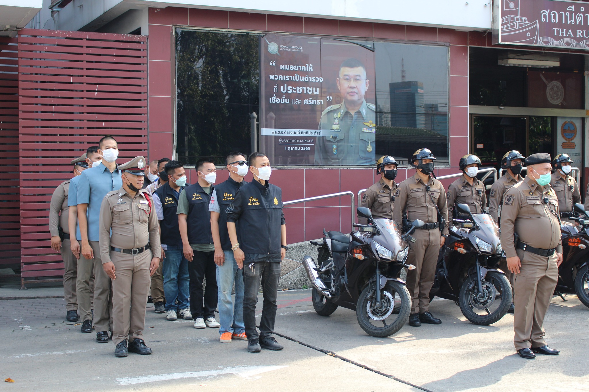 วันที่ 7 กุมภาพันธ์ 2566 เวลา 14.00 น. พ.ต.อ.พีรธรรม คำจร ผกก.สน.ท่าเรือ พร้อม พ.ต.ท.สุนทร สุขเจริญ รอง ผกก.ป.สน.ท่าเรือ เเละสวป. ร่วมประชุมงานป้องกันปราบปราม ณ ห้องประชุม ชั้น 2 สน.ท่าเรือ เเละอบรมปล่อยแถว มอบหมายนโยบาย พร้อมกำชับการปฏิบัติ เเก่ข้าราชการตำรวจงานป้องกันปราบปรามสถานีตำรวจนครบาลท่าเรือ ณ ลานอเนกประสงค์ สน.ท่าเรือ